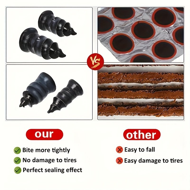 এই স্ক্রুগুলো বিশেষভাবে এমনভাবে ডিজাইন করা হয়েছে যেন এটি টায়ারের ছোট ছিদ্রগুলোতে টাইটভাবে ফিট হয়ে বাতাস বের হওয়া বন্ধ করে দেয়। এটি গাড়ির টায়ার থেকে শুরু করে মোটরসাইকেল এবং অন্যান্য যানবাহনের টায়ার মেরামতের জন্যও উপযুক্ত।