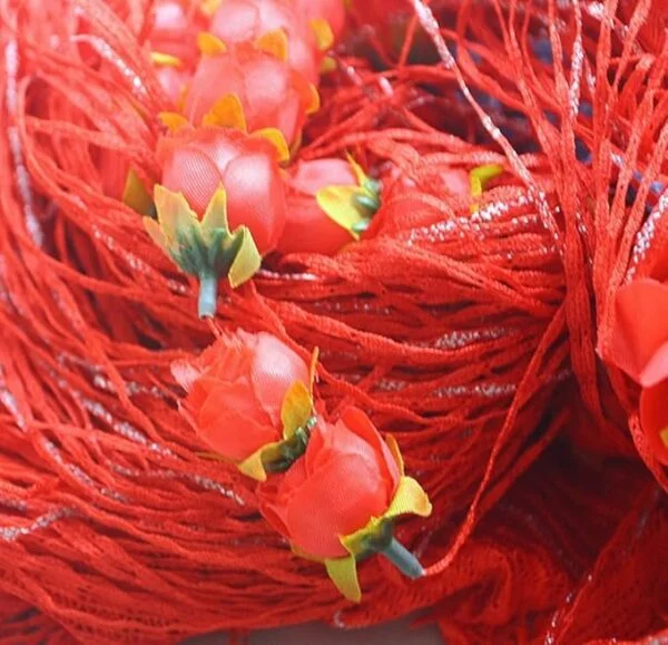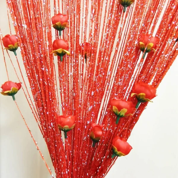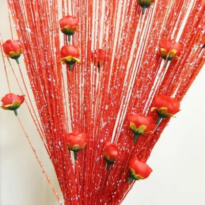 Elegant Red String Curtain with Hanging Rose Tassels – লাল রঙের পলিয়েস্টার লাইন কার্টেন উইন্ডো, দরজা, বিয়ে ও ইভেন্টের জন্য